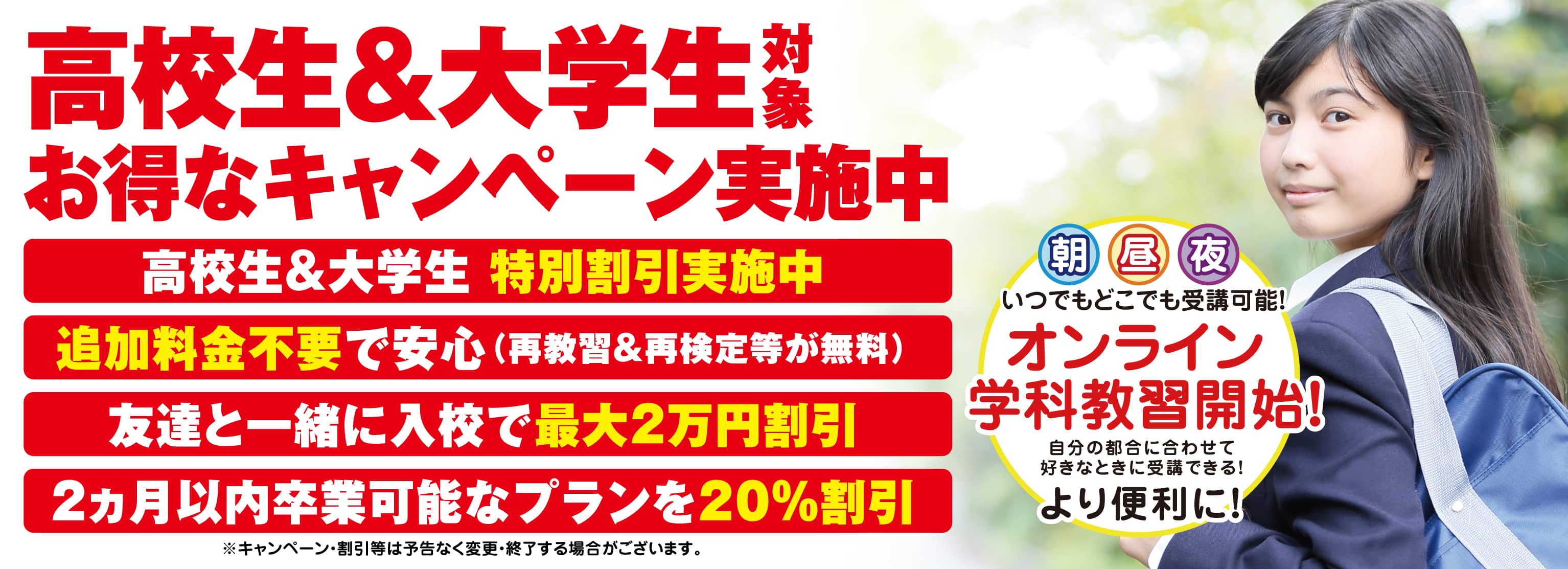 - 専門学校生&大学生特別価格でお安く免許取得できます☆